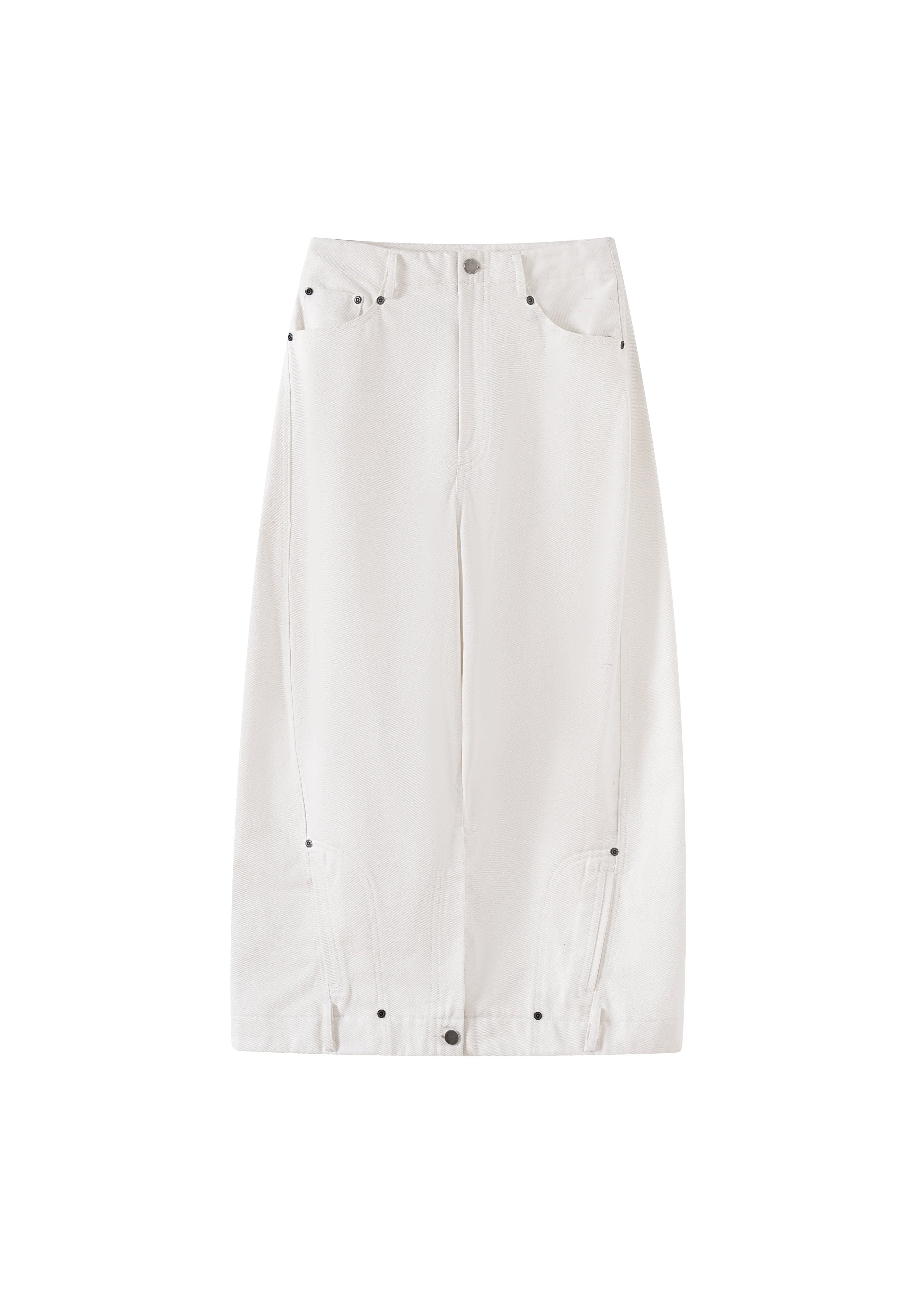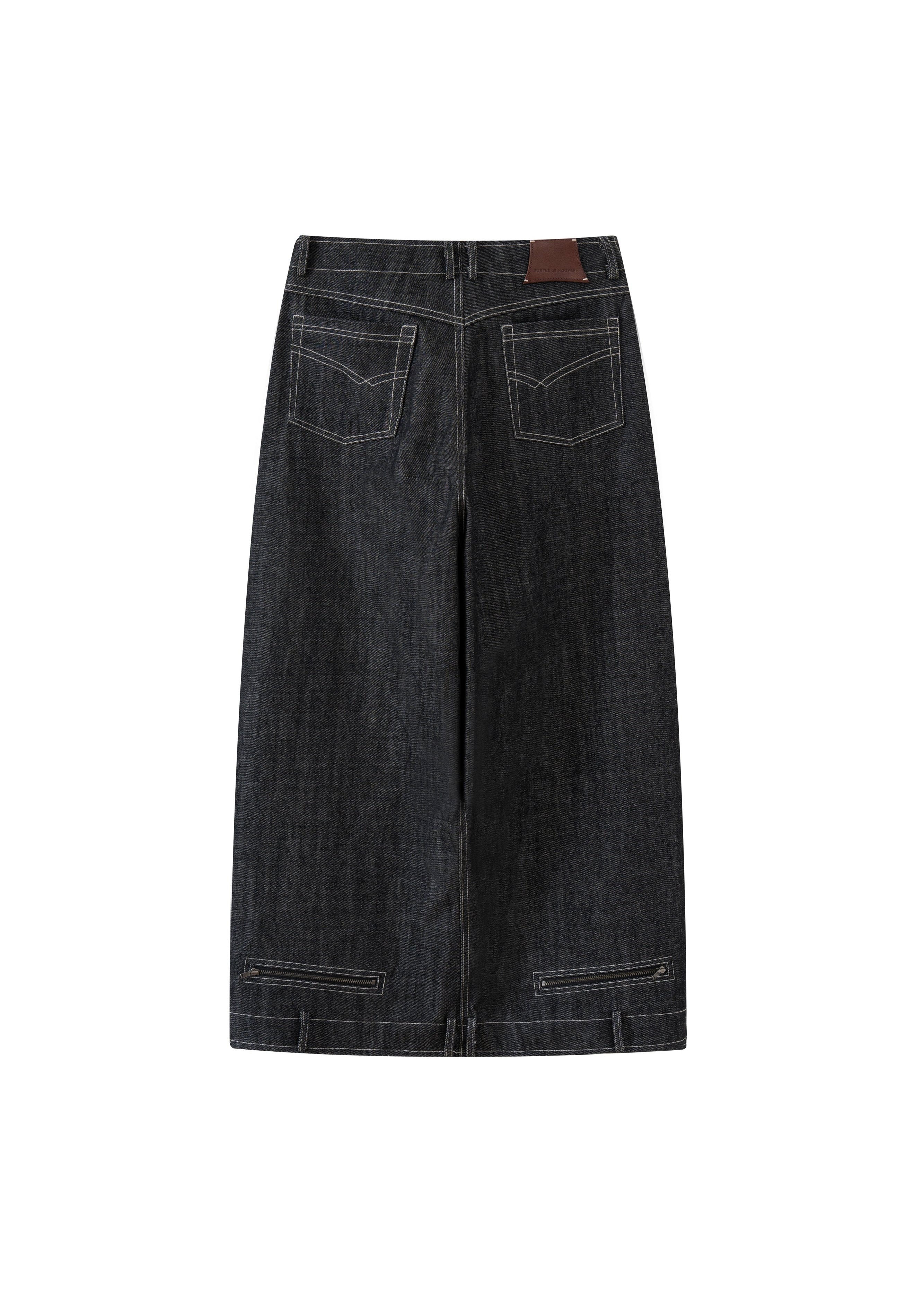 Raw denim maxi skirt made with organic Japanese denim, can be worn upside-down.