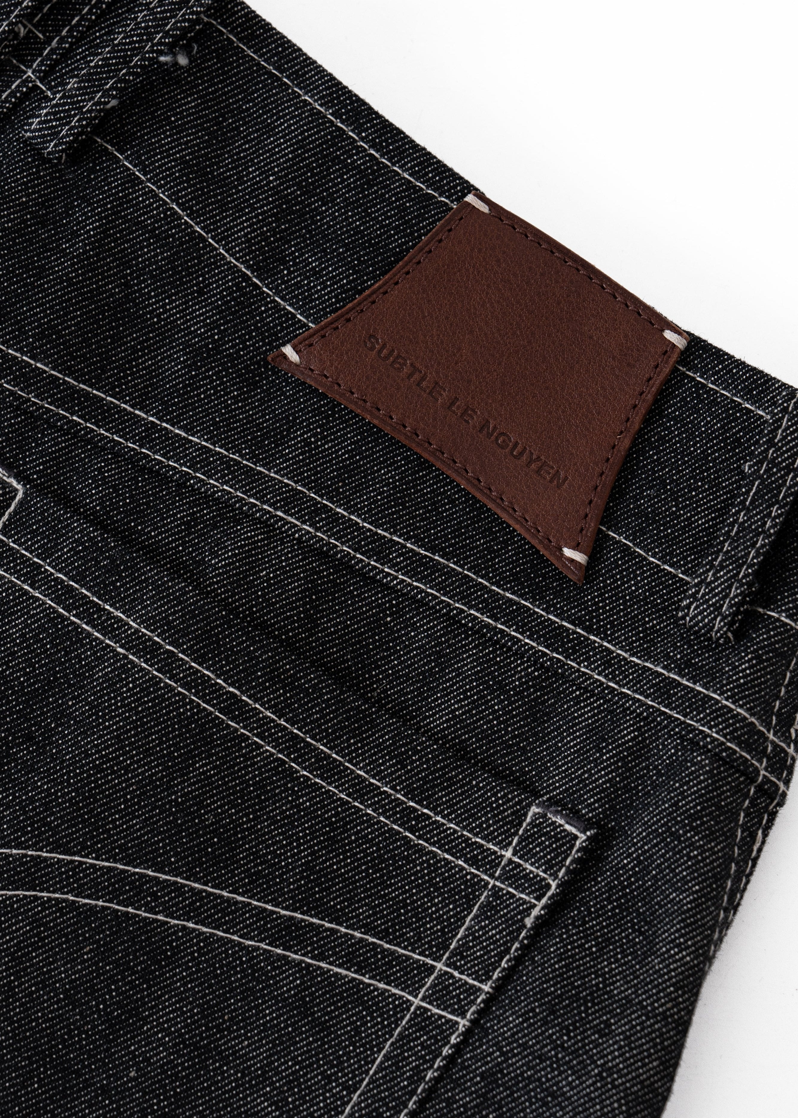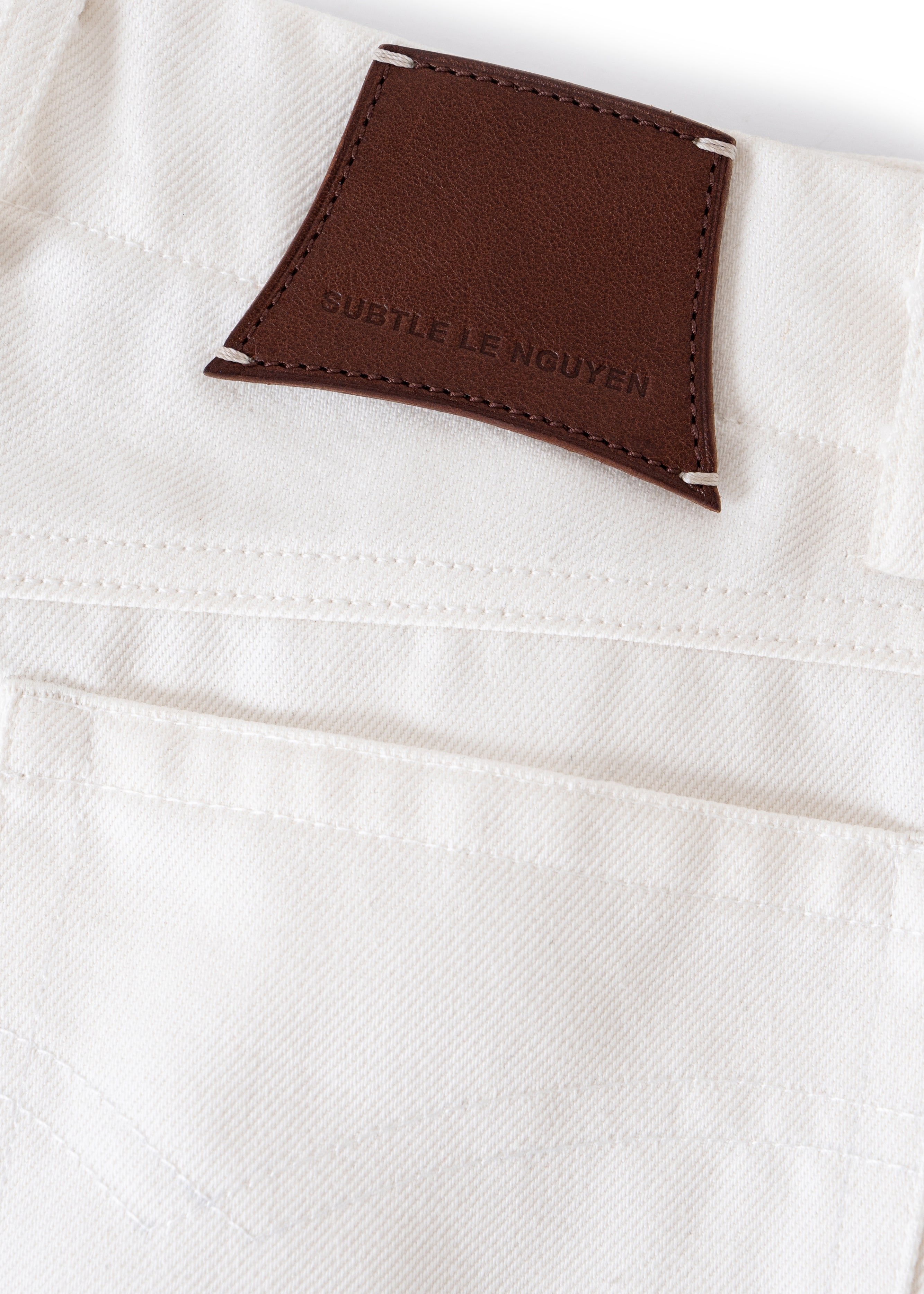 - Maxi length, regular rise- Belt loops, zip-fly, five-pocket styling- Debossed leather tagComposition: Cotton 100%Handmade in Vietnam