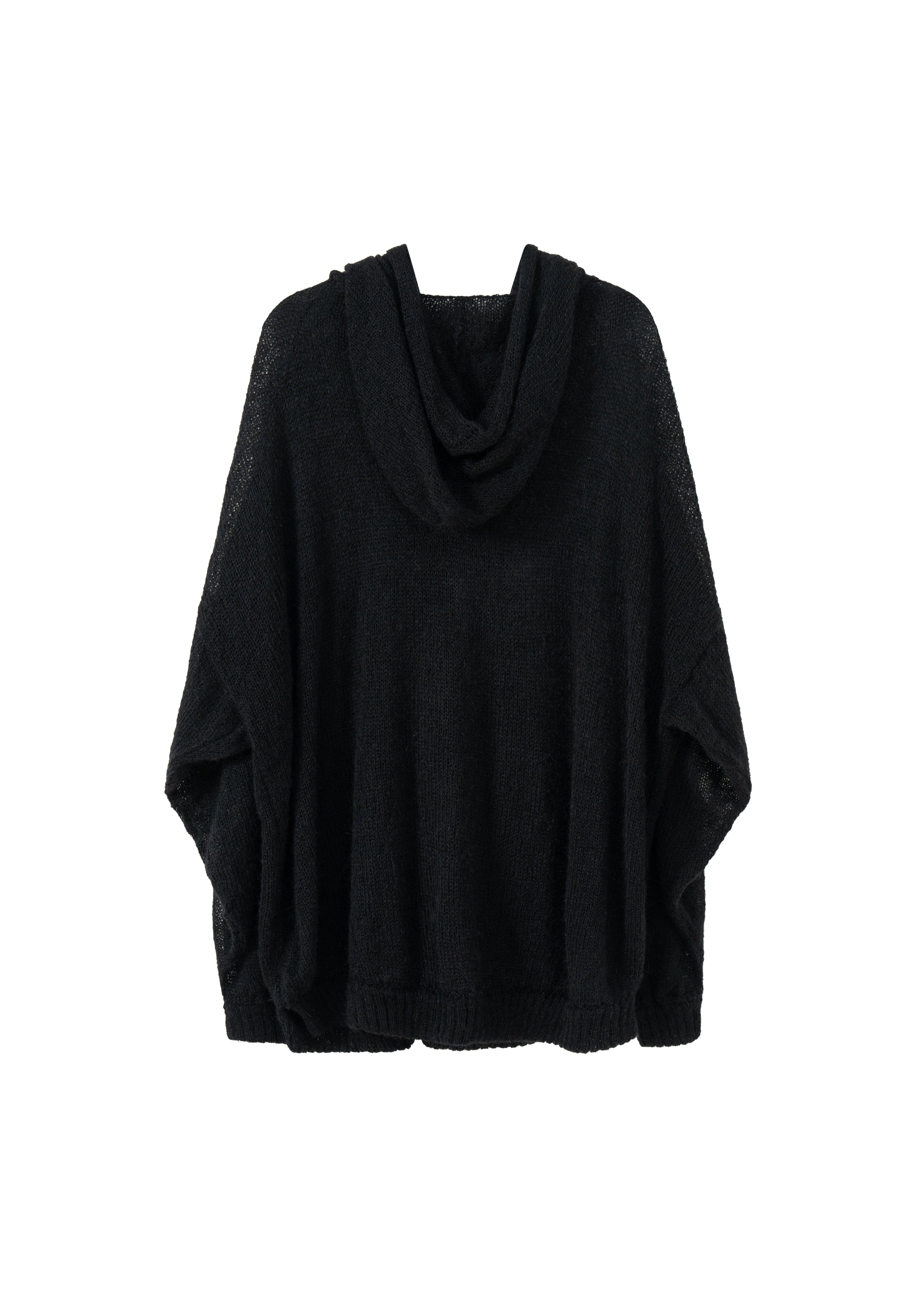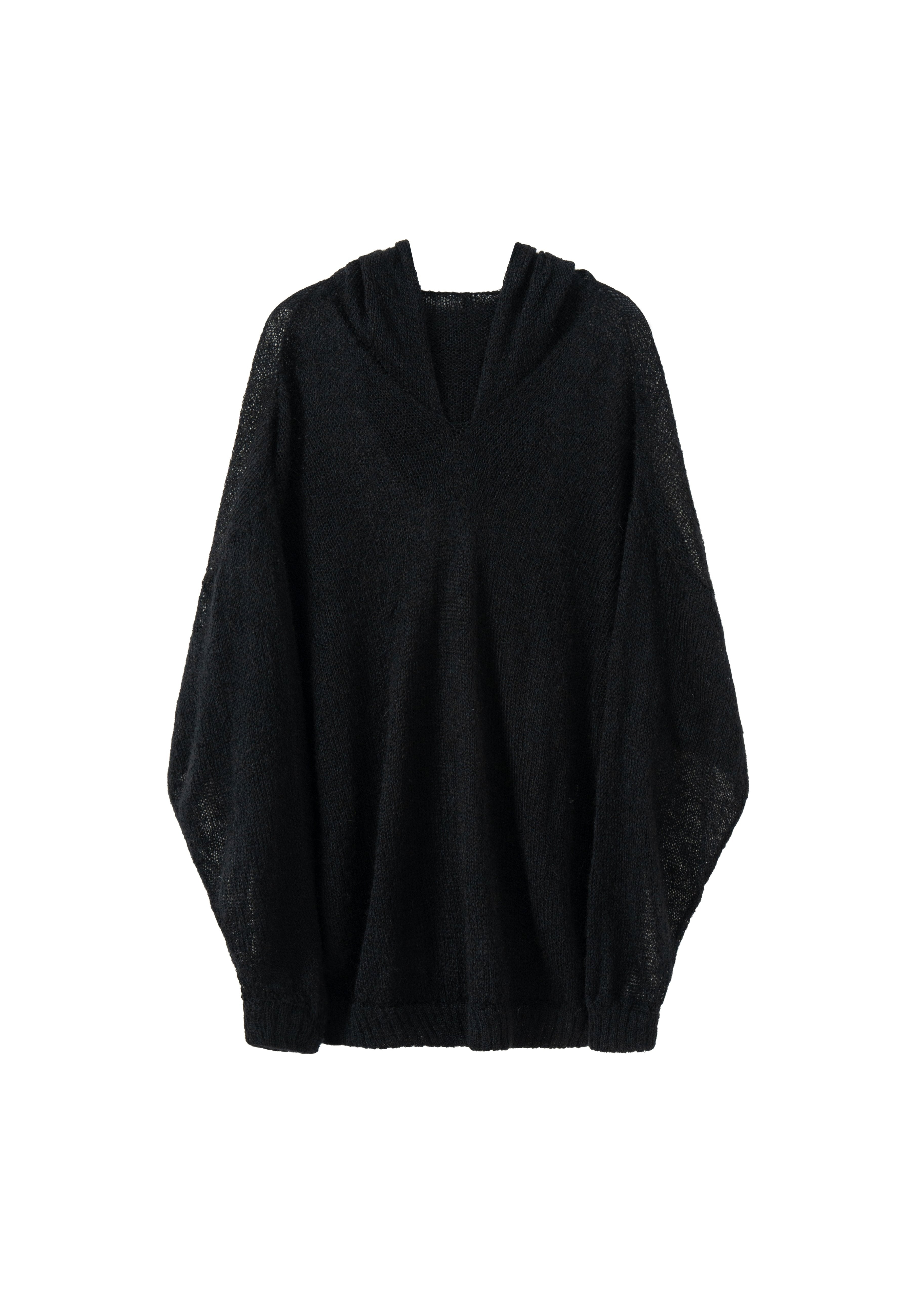 Handmade knitted oversized hoodie with V-neck collar and long cocoon sleeves. Made with brushed alpaca yarn. Available in Black, and Gray