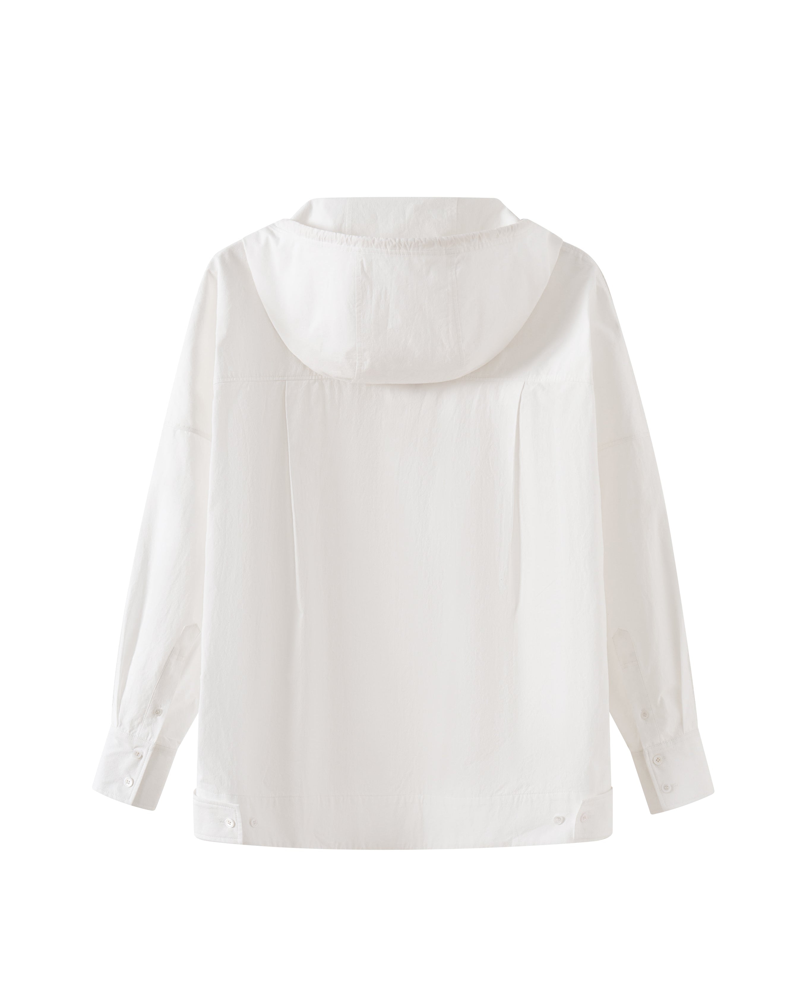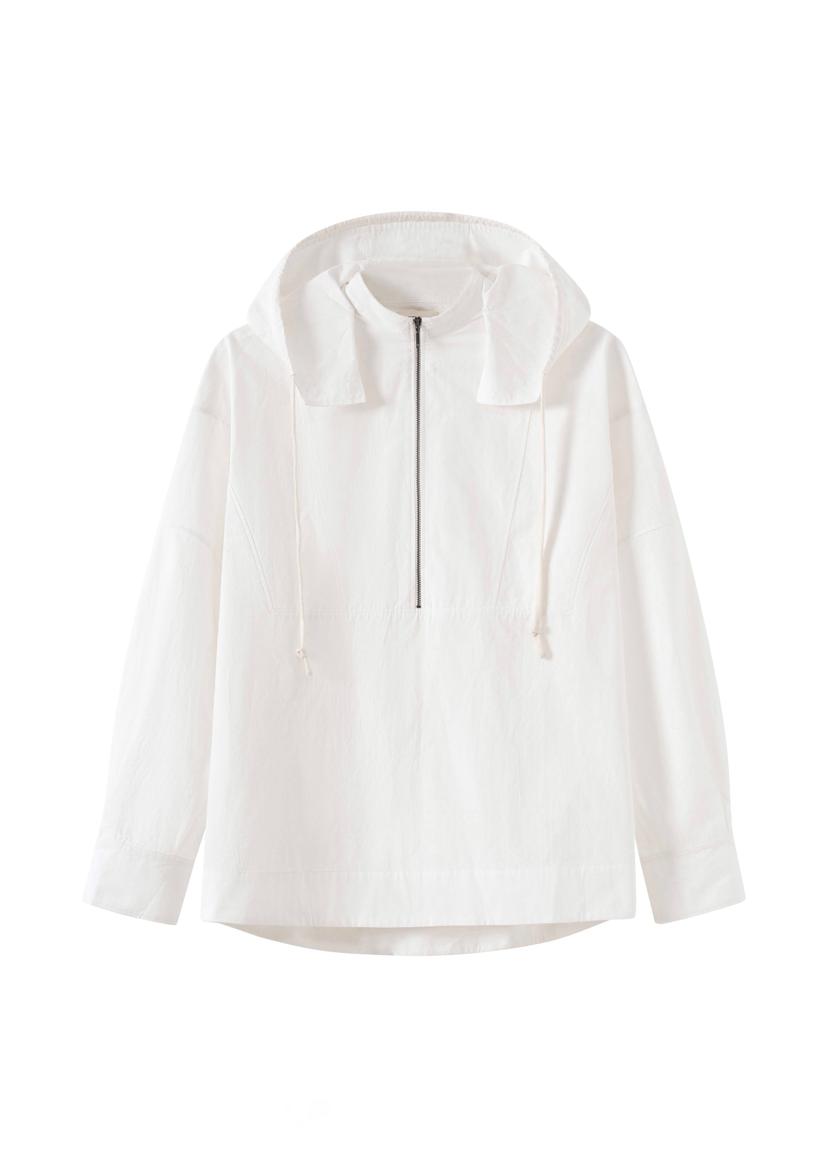 Crispy white cotton long-sleeved shirt with mandarin collar and detachable hood. Made for an oversized fit, this shirt has double-button barrel cuffs, a high-low hemline and zip fastening at frontComposition: Cotton 100%