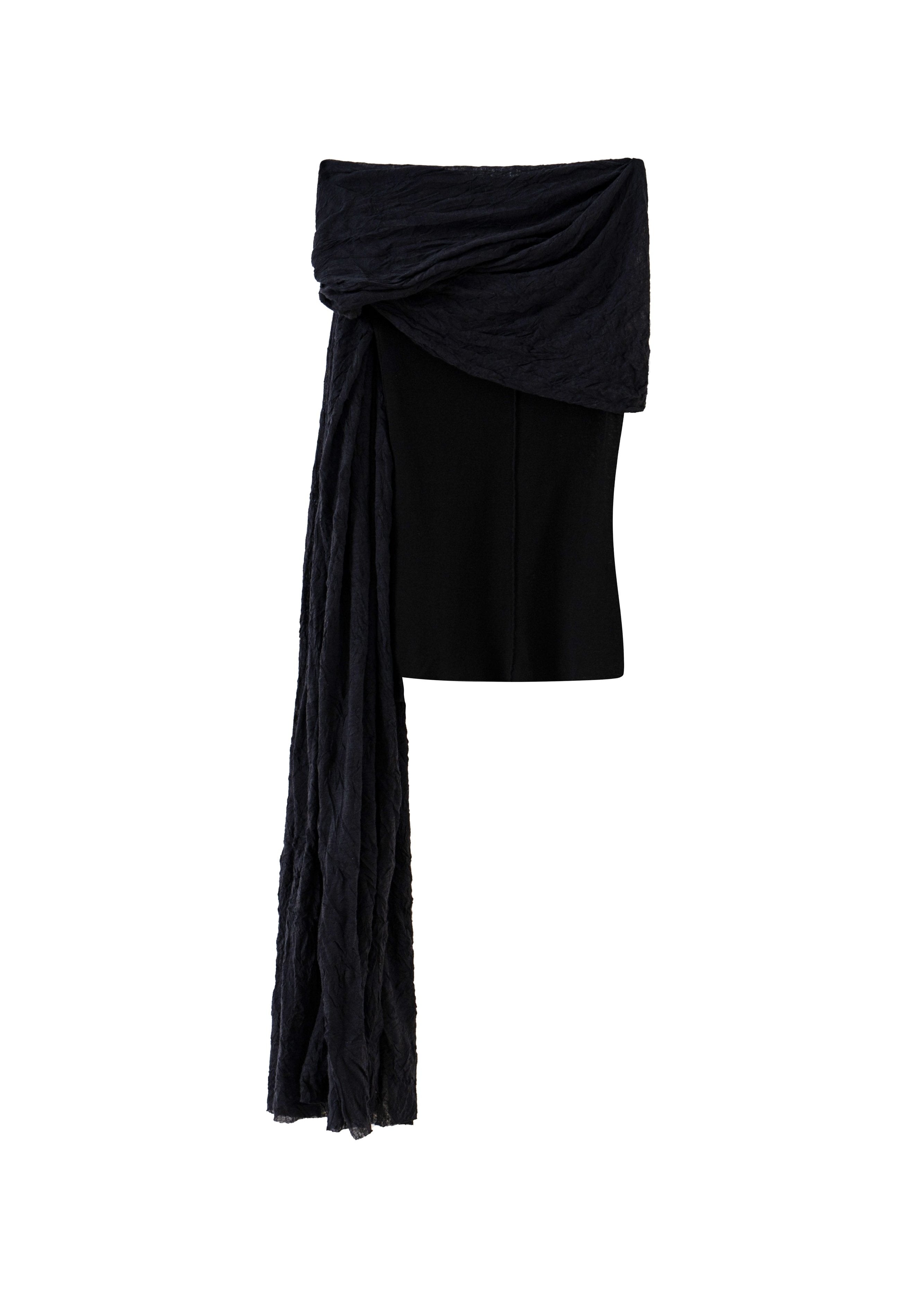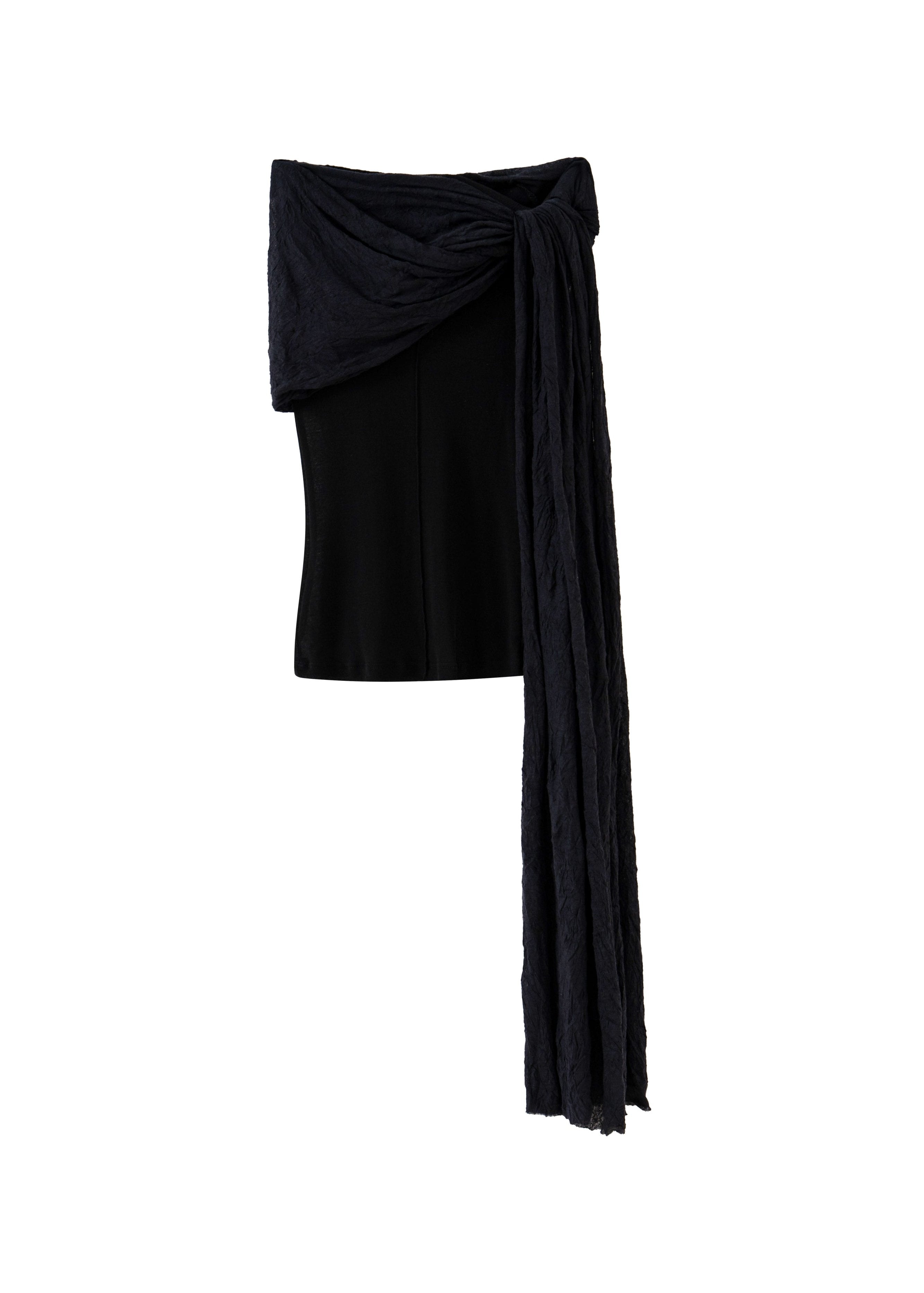 Semi-sheer tube top made with fine cotton jersey. Twisted and knotted detail in wrinkled jersey at front.