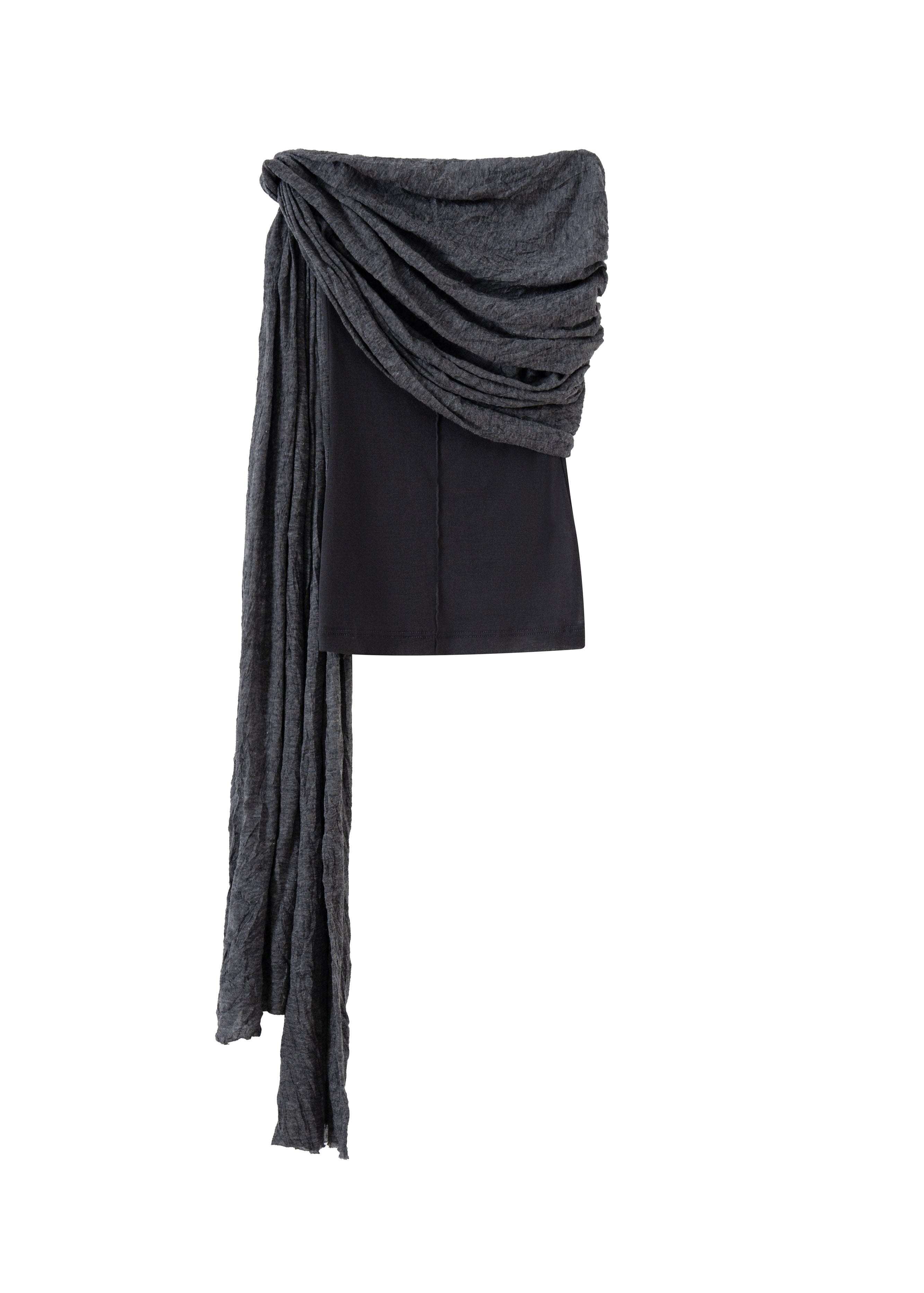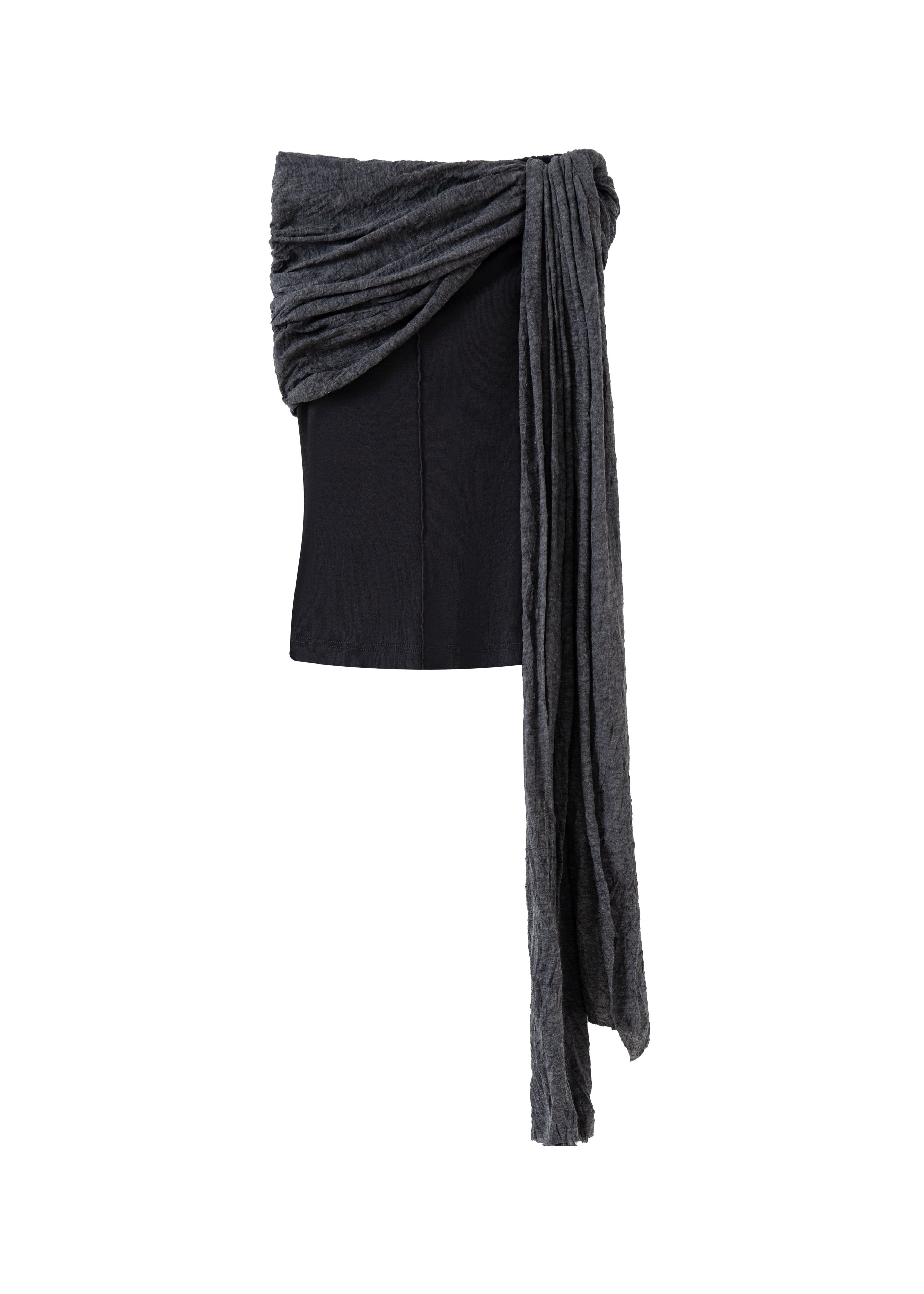 Semi-sheer tube top made with fine cotton jersey. Twisted and knotted detail in wrinkled jersey at front.
