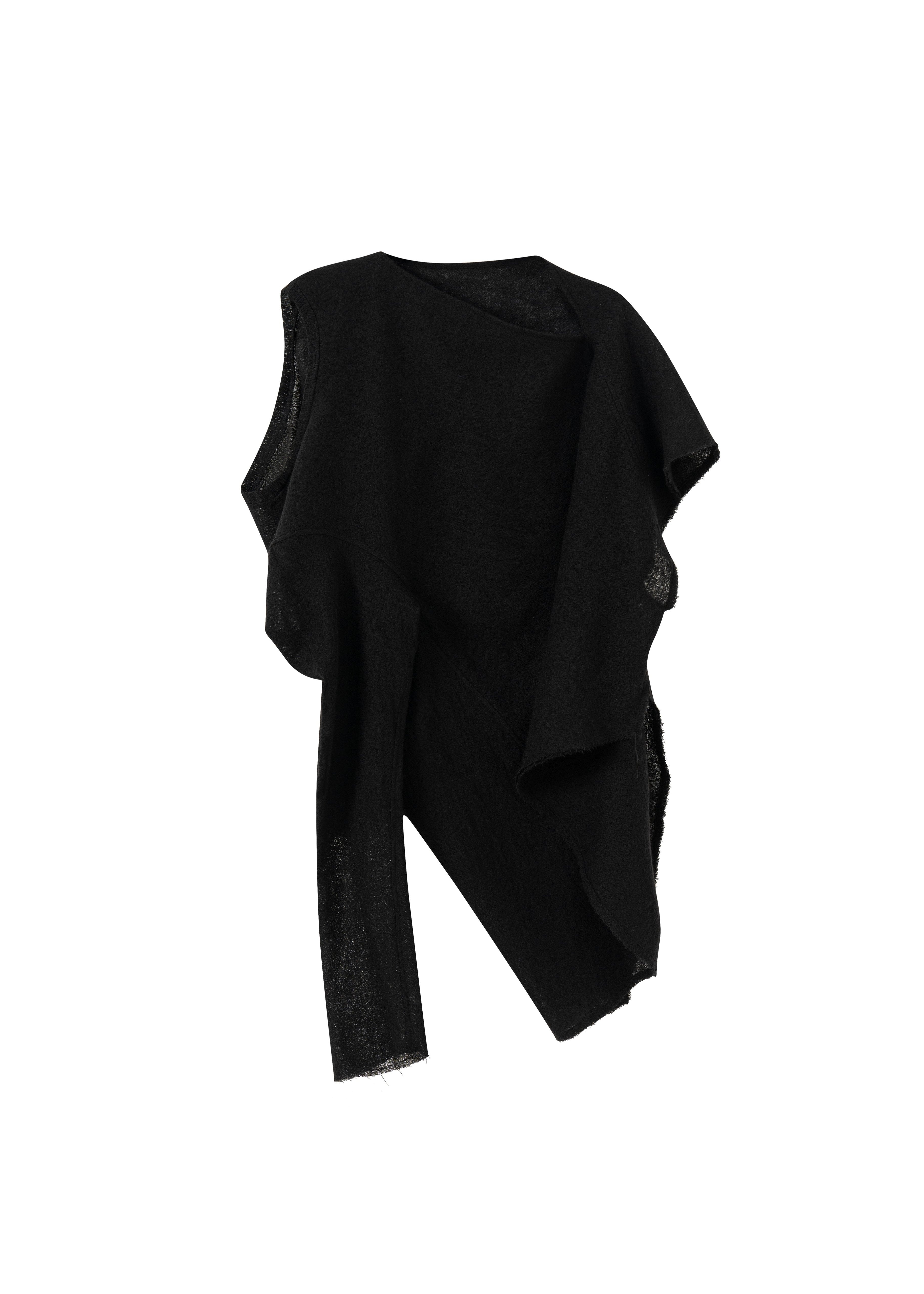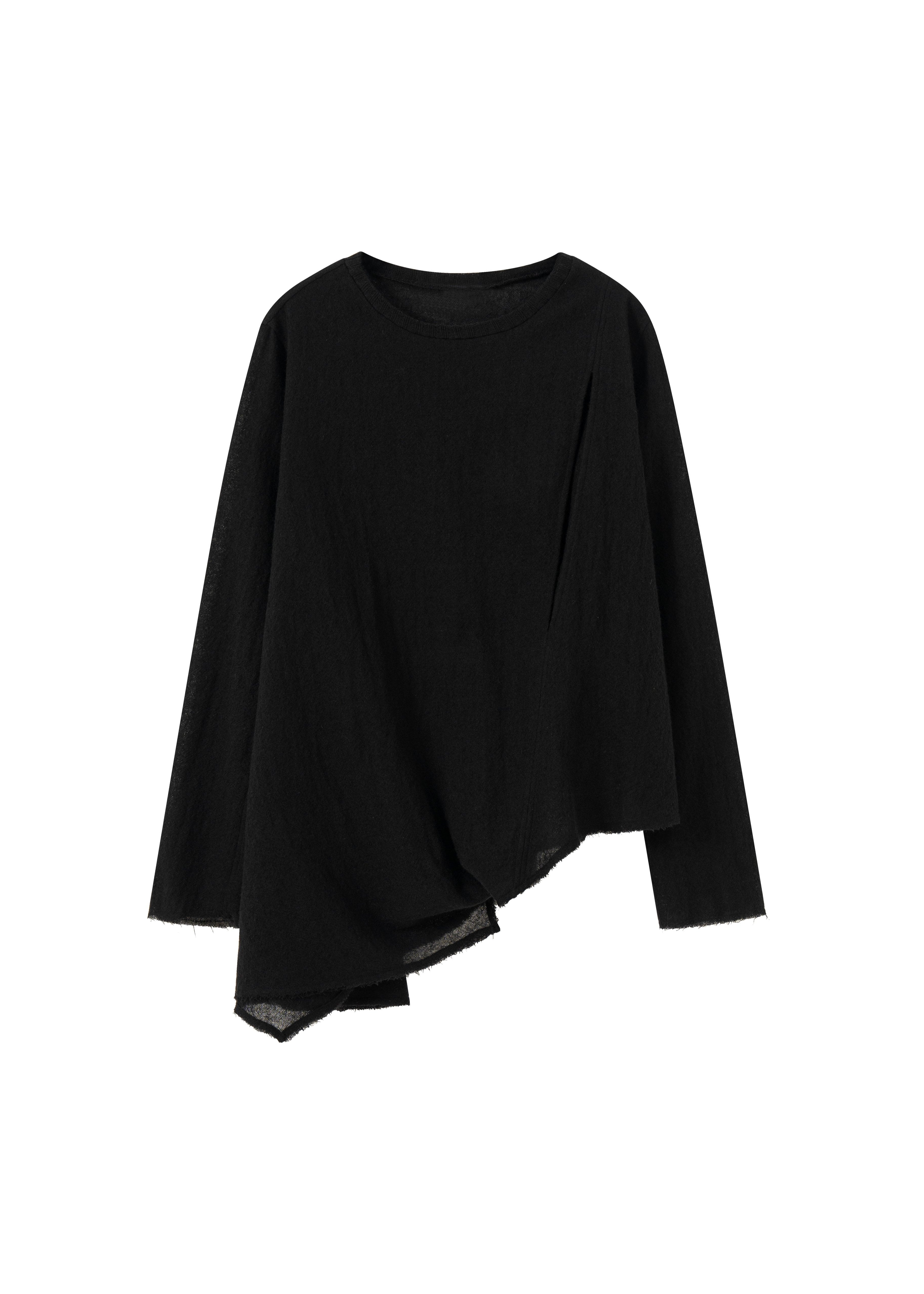 Oversized hybrid worsted wool sweater. Hand-knit crewnecks. Can be worn in different ways.- Raw-edged finishing- Relaxed fit- No fastening