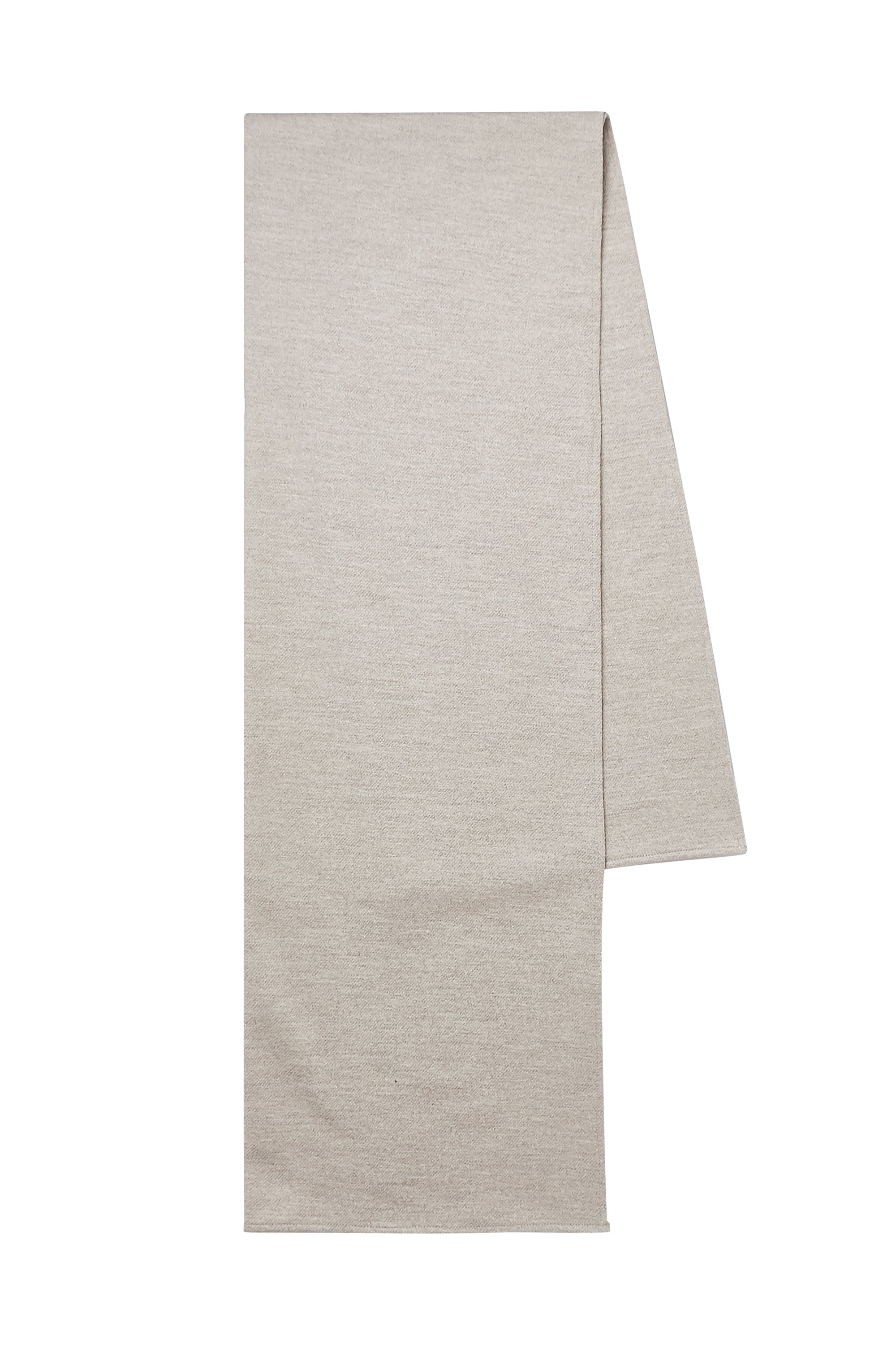 This Twill Wool Scarf is made from a twill weave wool, providing a textured surface. It is designed in a rectangular silhouette with finished edges, presenting a single, continuous piece of fabric.